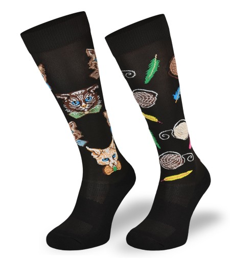 Podkolanówki jeździeckie COMODO SJP – czarne koty, rozmiar: 31-34