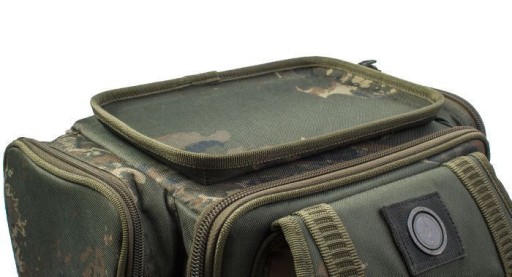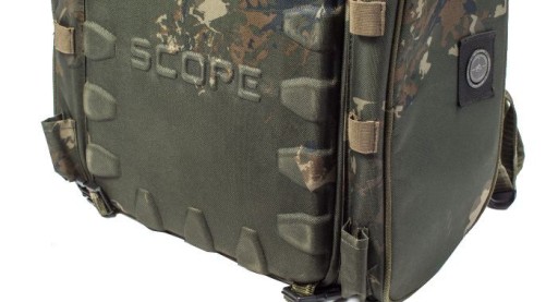 Boczne przegrody zwiększają ładowność plecaka. Scope Recon Rucksack został również wzbogacony o tackę zabezpieczoną magnesem. Wyściełane, regulowane pasy naramienne można przypiąć do głównej części plecaka, w rezultacie czego otrzymamy podporę podtrzymującą tackę, na której przechowamy pod ręką niezbędne narzędzia, przynęty, czy też zapasowe przypony. Ewentualnie, tackę można przypiąć do górnej części plecaka.