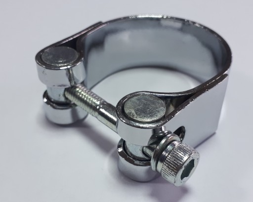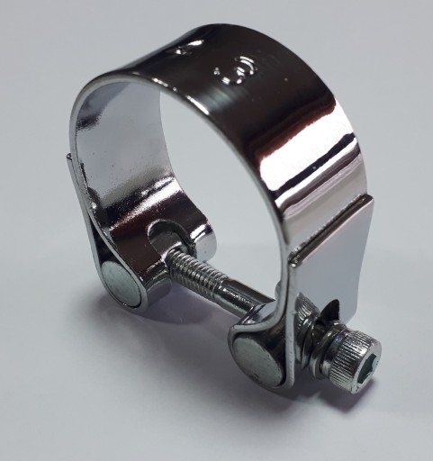 Chromowana stalowa obejma montażowa do łączenia tłumika z kolektorem.