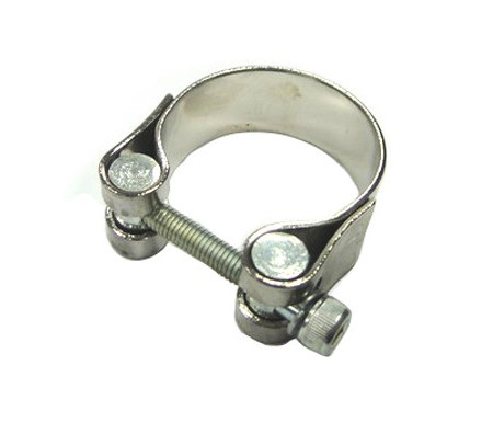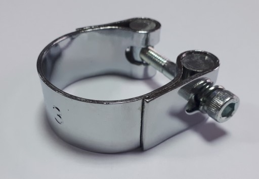 Chromowana stalowa obejma montażowa do łączenia tłumika z kolektorem.