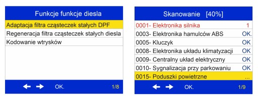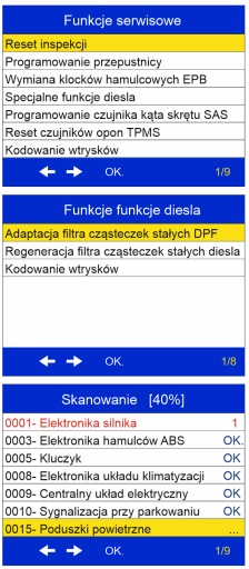 - odczyt kodów usterek we wszystkich systemach