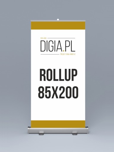 Bardzo stabilny Roll up 85x200 cm z wydrukiem bardzo wysokiej jakości, na materiale Blockout PET, materiał nie zawija się po brzegach ma gładką strukturę i nie przepuszcza światła (to nie jest baner ani frontlit)