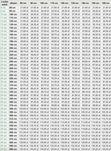(2,70 zł = 1 szt. przy danym rozmiarze - np. 110x130 = 29,70 zł = 11 szt. itd.)