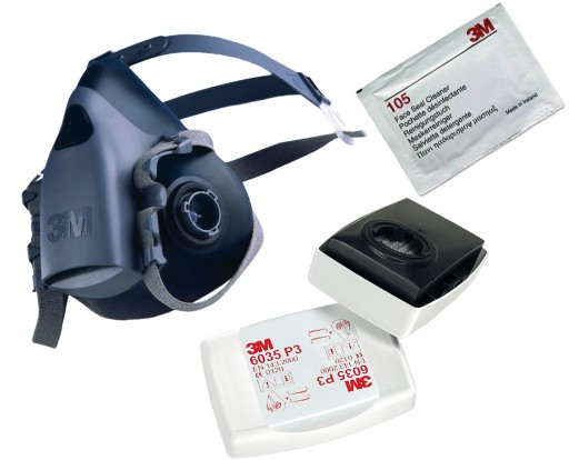 KOMPLET SKŁADA SIĘ Z MASKI 3M 7502 rozmiar średni lub 7503 - większy- do wyboru- proszę zaznaczyć w wiadomości do sprzedającego, filtrów przeciwpyłowych KLASY P3, oraz ściereczki czyszczącej 3M 105