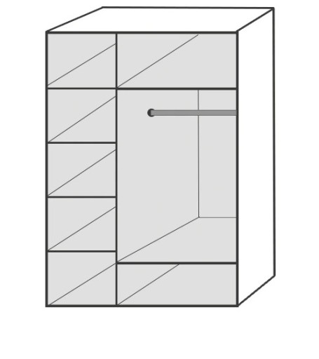 - Szafa w swoim wnętrzu posiada drążek na ubrania oraz półki