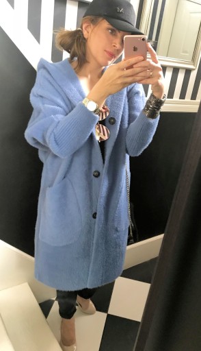 Płaszcz długością sięga przed kolana.