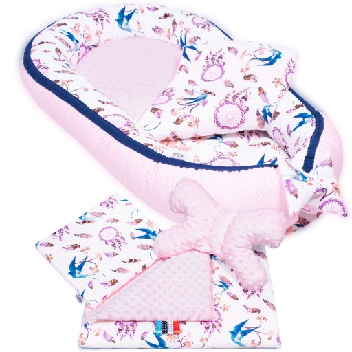 Gniazdko poprzez kształt i miękkie brzegi wyznacza bezpieczną i przytulną strefę w łóżeczku, na kanapie, dywanie czy w łóżku rodziców. Chroni dziecko przed sturlaniem się i gwarantuje mu bezpieczny sen, może być używany nawet jako miejsce do przewijania malucha.