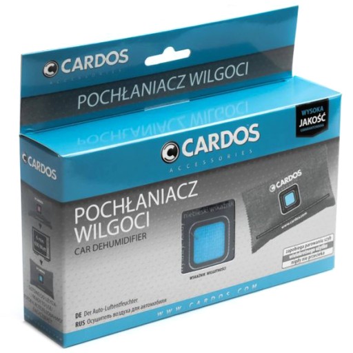 POCHŁANIACZ WILGOCI CARDOS to najprostszy sposób na pozbycie się nadmiaru wilgoci z wnętrza auta. Skutecznie rozwiązuje problem zaparowanych szyb, poprawiając komfort i bezpieczeństwo użytkowania samochodu. Wygodny i łatwy w użyciu.