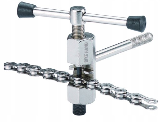 Mały poręczny klucz do łańcucha. Odporna stalowa konstrukcja. Dodatkowo skuwacz posiada blokadę w postaci pokrętła aby łańcuch nie przemieszczał się podczas skuwania