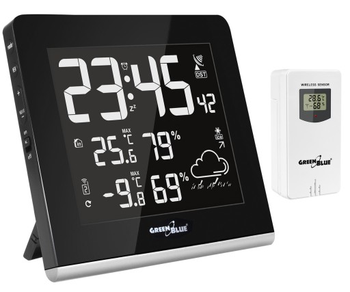 - Stacja pogody bezprzewodowa 9 kolorów GreenBlue GB151 DCF VA LCD