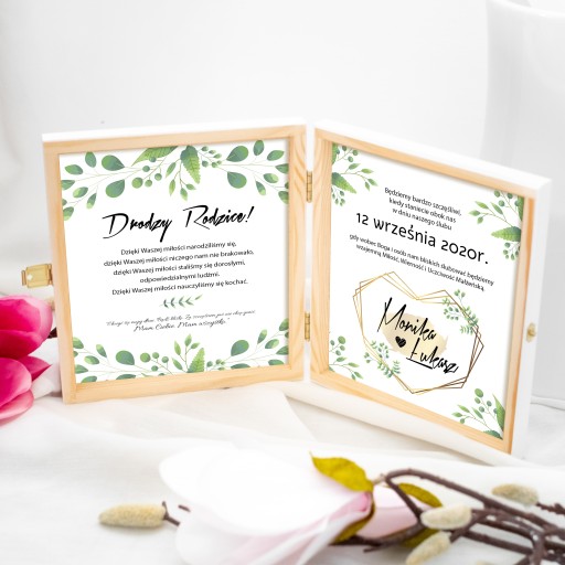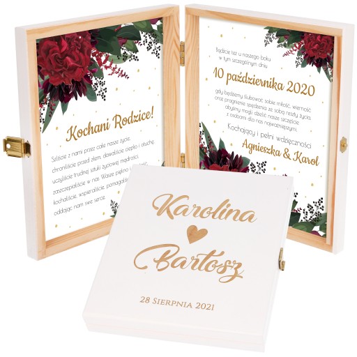 ORYGINALNE ZAPROSZENIE DLA RODZICÓW W ELEGANCKIM PUDEŁKU ZE SPERSONALIZOWANYM GRAWEREM