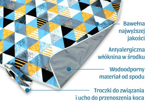 Wyjątkowy, miękki, bawełniany koc piknikowy.