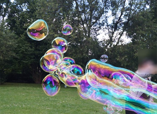 Kiedy będziesz robić bańki za pomocą tych sznurków, obracaj się dookoła siebie, mając kijki ustawione w pozycji poziomej… dookoła ciebie będą unosiły się setki baniek… – efekt naprawdę niesamowity !