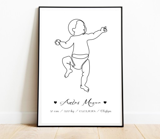 Sam plakat zawiera wszystkie najważniejsze informacje z dnia narodzin dziecka, dlatego podczas zakupu prosimy o podanie wszystkich niezbędnych informacji jak: