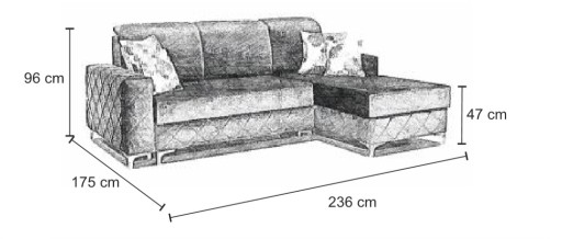 Produkt jest idealnym sposobem na nadanie w Twoim domu estetycznego , a zarazem luksusowego stylu GLAMOUR!. Mebel poza praktyczną funkcją spania posiada pojemnik na pościel oraz mechanizm ułatwiający rozkładanie. Narożnik stoi na stylowych chromowanych nogach, które są doskonałym dodatkiem mebla.