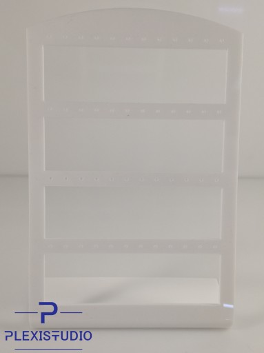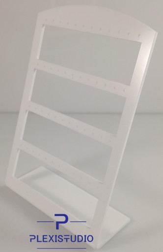 Bardzo elegancki stojak ekspozytor do kolczyków z plexi. W stojaku wycięte są otworki w celu wygodnego wieszania różnych modeli kolczyków.