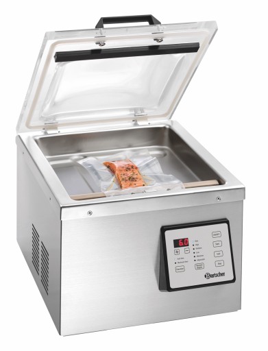 Profesjonalna pakowarka próżniowa marki Bartscher umożliwi pakowanie próżniowe, zgrzewanie czy marynowanie rozmaitych artykułów spożywczych np. w celu wydłużenia ich trwałości, mrożenia bądź gotowania metodą sous vide. Pozwoli także na pakowanie innych przedmiotów dla ich ochrony przed niekorzystnymi warunkami np. kurzem czy wilgocią. Urządzenie posiada certyfikat CE i spełnia wymagania Sanepidu.
