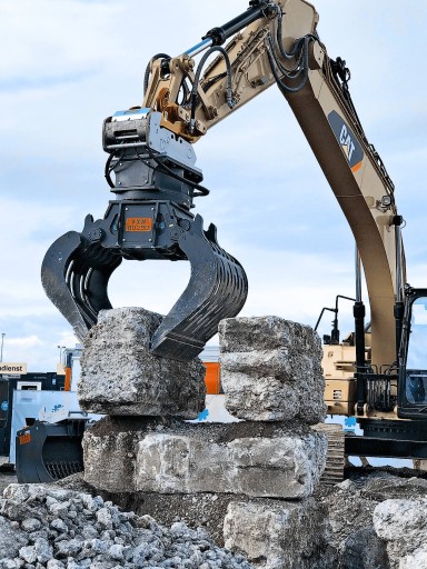 Obrotowe chwytaki wielozadaniowe serii VTN MD dzięki dwóm dostępnym rodzajom szczęk, znajdują zastosowanie zarówno w wyburzeniach jak i pracach przeładunkowych.