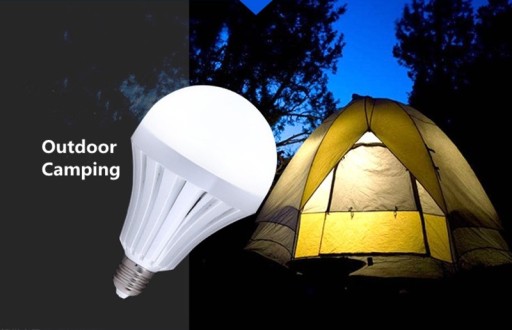 Żarówka posiada wbudowany akumulator dzięki któremu automatycznie włącza się przy braku zasilania z sieci energetycznej.
