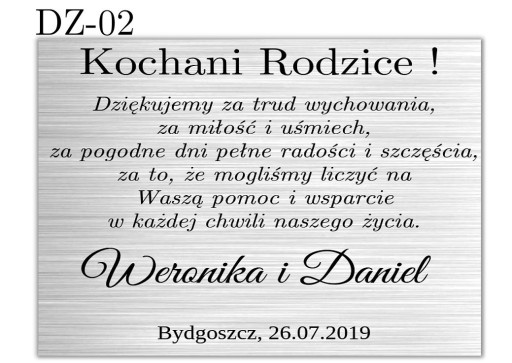 W przypadku zamówienia podziękowania dla jednego z rodziców, mamy lub taty nasi graficy odmienią dedykację do liczby pojedynczej.