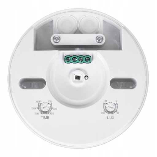 - Czujnik posiada 2 pokrętła: pokrętło LUX umożliwia regulację wartości progowej natężenia oświetlenia (dzięki tej właściwości możemy przystosować go do działania tylko w okresie od zmierzchu do świtu) oraz pokrętło TIME, dzięki któremu możliwa jest regulacja czasu podtrzymania załączenia