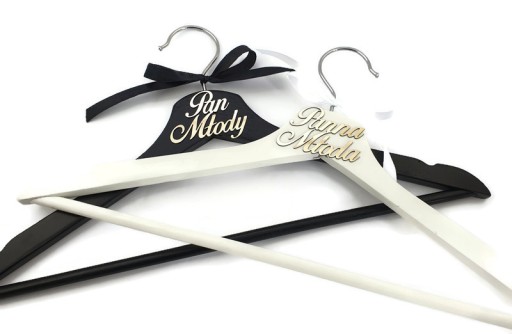 Dzięki solidnemu wykonaniu z drewna, wieszaki są nie tylko stylowym dodatkiem, ale także praktycznym narzędziem do przechowywania ubrań czy dodatków ślubnych. Ten komplet to idealny sposób na wprowadzenie do przestrzeni przygotowań przed ślubem nuty elegancji i spersonalizowania każdego detalu tego wyjątkowego dnia.