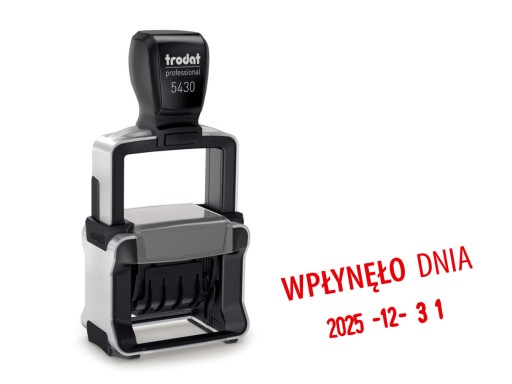 Wysokiej jakości datownik Trodat Professional 5430 z treścią: WPŁYNĘŁO DNIA
