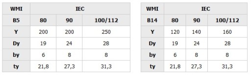 - mocowania: kołnierzowe małe (B14), duże (B5), łapowe (B3), kołnierzowo - łapowe (B34,B35).