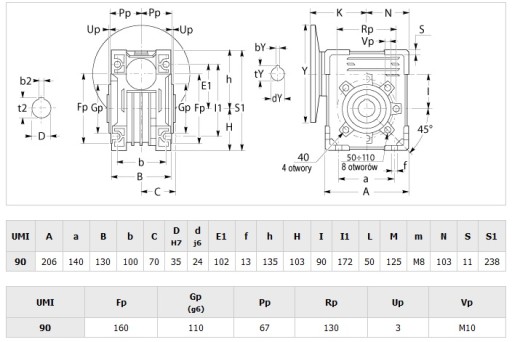 Reduktor / przekładnia ślimakowa STM UMI 90