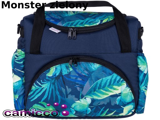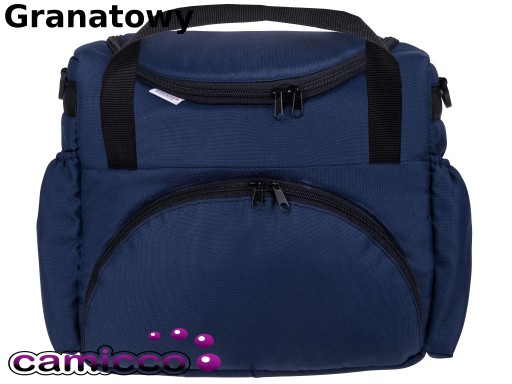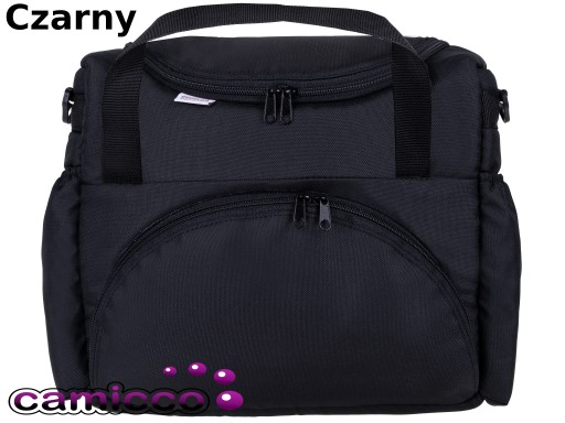 Boczne kieszonki zapewniają bezpieczny transport butelek, zapobiegające przed możliwym rozlaniem się. Z przodu torby znajduje się duża kieszeń zapinana na zamek