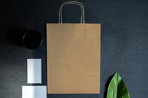 Torby papierowe z uchwytem płaskim wykonane są z brązowego papieru KRAFT, uchwyty toreb klejone wewnątrz toreb.