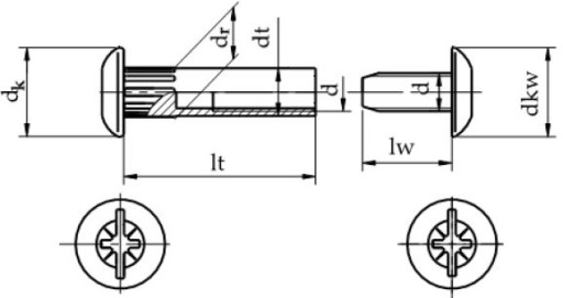 Винтовой соединитель для соединения корпусной мебели 6 мм 39-45