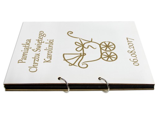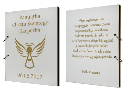 DREWNIANY ALBUM Z GRAWEREM NA CHRZEST DEDYKACJA