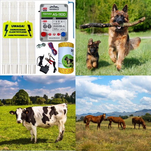 Przedstawiamy KOMPLETNE OGRODZENIE ELEKTRYCZNE, które doskonale sprawdzi się w przypadku, gdy chcecie Państwo ZABEZPIECZYĆ SWÓJ TEREN, OGRÓDEK przed PSAMI albo WYGRODZIĆ PASTWISKO dla swoich zwierząt hodowlanych takich jak KONIE, KROWY, BYDŁO MLECZNE, TRZODA CHLEWNA, DRÓB.