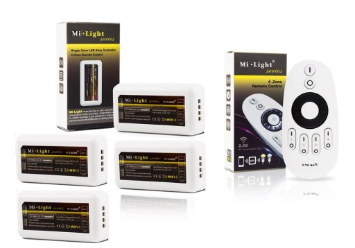 ZESTAW Mi-light Sterownik + Pilot do taśm LED Jednobarwnych, ściemniacz 4 strefy