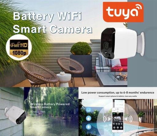 Kamera IP WIFI z akumulatorem bez konieczności podłączania do prądu, kamera pracuje na bateriach do 8 miesiecy, podglad online, obsługa kart micro sd. Kąt patrzenia kamery to aż 104 stopnie. Funkcje : BLC, IR, HLC, Motion Compensation, WDR