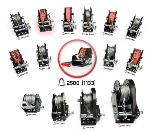 Na poniższym rysunku prezentujemy pełną gamę wyciągarek korbowych Dragon Winch.