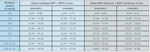 - przyłącze 2 - gwint zewnętrzny stożkowy 1/8 (średnica gwintu 9,40 - 9,70 mm)