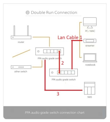 2 switchs for double run improve much more sound quality than single run.