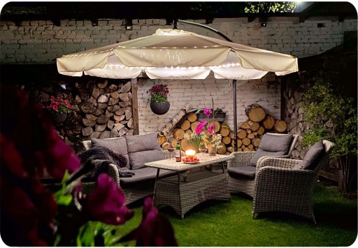 *oświetlenie widoczne na zdjęciach nie jest dołączane do parasola