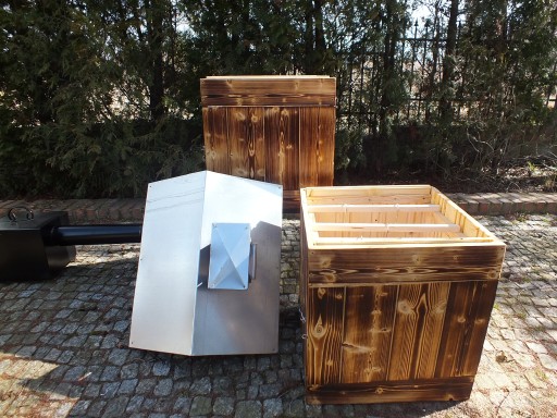 - Została wykonana z deski sosnowej (a nie jak naszę wędzarnie z deski świerkowej)