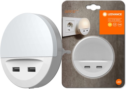 Nowoczesna Lampka Nocna do Gniazdka LUNETTA renomowanej i cenionej w branży oświetleniowej firmy Ledvance. Lampka o mocy 13W zapewnia delikatne przyjemne światło o temperaturze barwowej 3000K. Lampka wykonana z wysokiej jakości tworzywa sztucznego została wyposażona w dwa gniazda USB umożliwiające podłączenie urządzenia mobilnego do ładowania. Lampka posiada zintegrowany czujnik światła dziennego, dzięki czemu lampka automatyczne włącza się i wyłącza w zależności od ilości dostępnego światła dziennego. Lampka Nocna z funkcją ŁADOWARKI USB swoje zastosowanie znajdzie w każdym pomieszczeniu codziennego użytku.