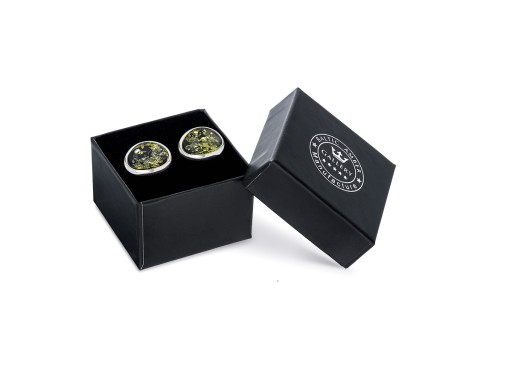 Spinki zapakowane opakowaniu jubilerskim, z wysokiej jakości kartonu. Do wyboru - czarne z logo manufaktury lub czerwone z ozdobnym napisem "I Love you".