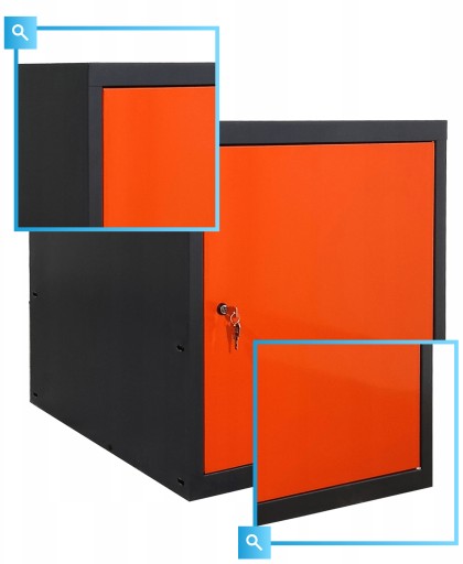 ➡️ szuflady w modułach wyposażone w najwyższej jakości prowadnice teleskopowe z wysuwem 100% i nośnością 40 kg, centralnie zamykanie, moduły/szafki wykonane są z blachy o grubości 0,8 mm, możliwość krycia blatu gumą lub blachą, możliwość przykręcenia stołu do posadzki