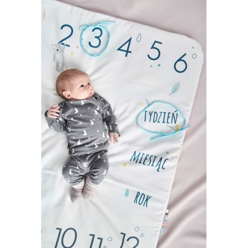 Snap the moment foto-kołderka to lekka, dwustronna kołdra, która rośnie razem z dzieckiem. Ma wielofunkcyjne zastosowanie: jedna strona służy do oznaczania wieku malucha, druga może być wykorzystana jako tradycyjna kołdra do kołyski lub łóżeczka, ale także jako mata do zabawy.