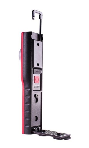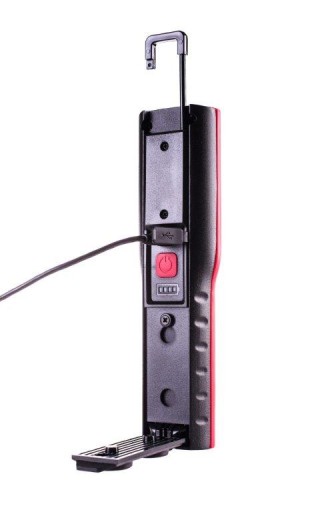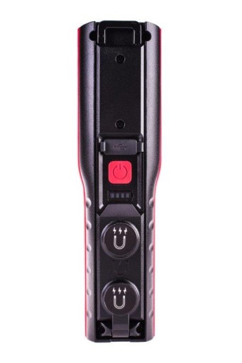 Posiada magnesy, przegubową podstawę, hak do zawieszania, lampę centralną i czołową pomocniczą.