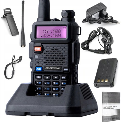 Radiotelefon Baofeng UV-5R HT jest profesjonalnym radiem krótkofalarskim ( z zaprogramowanymi kanałami amatorskimi PMR) które idealnie sprawdzi się do rodzinnych wyjazdów, spacerów itp. Baofeng UV-5R HT to dwupasmowy radiotelefon (duobander) o mocy 5 watów z podwójnym wyświetlaczem, klawiaturą DTMF i funkcją Dual Watch.