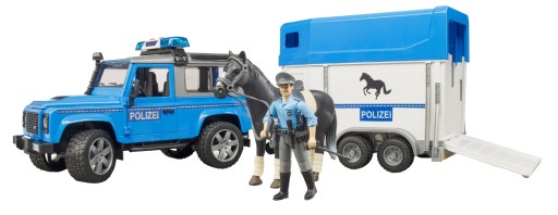 Bruder 02588 Land Rover Defender policyjny z przyczepą dla konia z figurką konia i policjanta