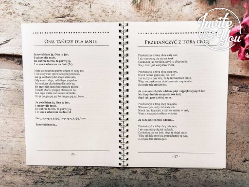 Eleganckie, niepowtarzalne, kolorowe śpiewniki weselne w których znajdują się najpopularniejsze, biesiadne i weselne piosenki i przyśpiewki które z pewnością sprawią, że uroczystość nabierze niezapomnianych chwil i na długo pozostanie w pamięci gości i pary młodej.