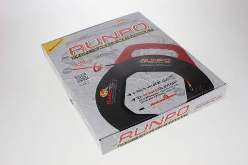 - Zestaw RUNPO to kolejna innowacja w procesie przeciągania kabli i przewodów. Opatentowane elastyczne włókno pozwala na przeciąganie w bardzo wąskich przestrzeniach. Posiada także doskonałą wytrzymałość na zginanie. Cały system ma niewiarygodną dopuszczalną siłę zrywającą na poziomie 270 kg. Opór tarcia jest także mniejszy o 50% ze względu na mniejszy kontakt ze ścianką.
